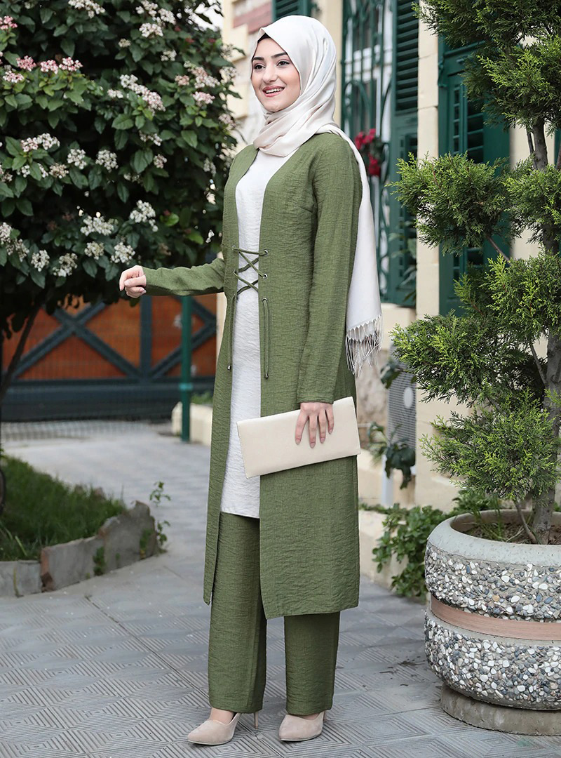 Elegant three pieces muslim sets Worship service robe suits top dress + pants + outer Robes