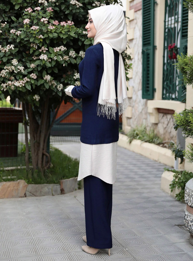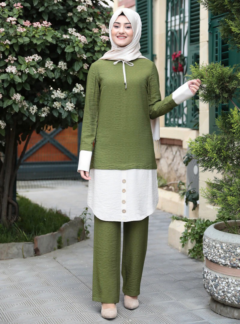 Muslim Women’s Dress Set Dubai Abaya Malay Turkey UAE Fashion Two Pieces Suit Set Long Sleeve Top with Long Pants